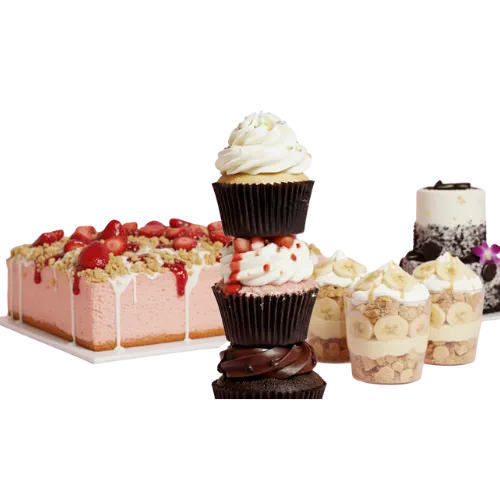 Keep all desserts refrigerated if you’re not serving them right away. Allow cakes and cupcakes to reach room temperature before enjoying for the best taste and texture.